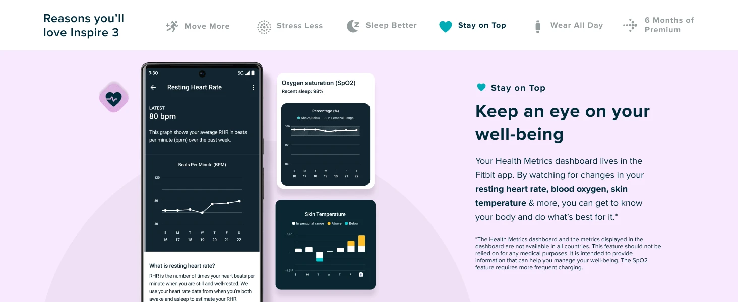 Just wear it — Inspire 3 helps you discover energy, do what you love, and feel your best. Compatible with Apple iOS 15+ and Android OS 9+.